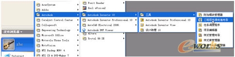 1、在window系統中,單擊“開始”→“Autodesk”→“Autodesk Inventor 10”→“工具”→“工程圖資源傳遞向導”,如圖(19)所示,彈出提示窗口。