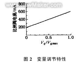 系統(tǒng)采用某公司的A11VO 260 LRDU2恒功率比例變量泵。泵的排量在其整個(gè)范圍內(nèi)可無級(jí)調(diào)節(jié),并與比例電磁鐵的控制電流成比例。恒功率控制優(yōu)先于變量控制,如果設(shè)定流量或工作壓力使功率曲線超過,則恒功率控制取代電控變量并按照恒功率曲線減小排量。當(dāng)?shù)陀诠β是€時(shí),排量受控制電流的調(diào)整,泵輸出的流量只與輸入控制信號(hào)相關(guān),而不受負(fù)載壓力變化的影響。變量調(diào)節(jié)特性如圖2所示。