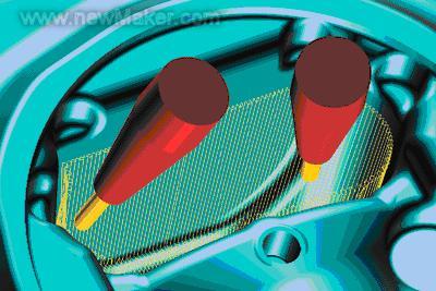 五軸加工——常用的最佳解決方案 常規的三軸加工,在制作葉片、葉輪及結構件等航空航天工業產品的程序時,需要進行繁雜的優化,往往造成極大的損失。然而,使用平刀或者圓鼻刀采用頂面及側面的五軸加工策略可顯著地加大步距量,將達到明顯地減少切削時間的效果。五軸運算速度方面有了明顯的改善,比如發動機閥帽內部的面原來運算需要67小時,現在僅需要6.7小時。小刀具使用五軸同樣可以加工高而陡峭的地方。如鍛模、鑄件及塑膠模具。在很長一段時間內,這項技術還沒有競爭對手,因為相應的可靠程序付出的代價相當高。刻字及開槽或者是沿曲面的曲率倒角以及邊緣上的毛刺的去除,如果不采用五軸聯動就往往不可能實現。如果采用其他的策略僅在成本上面已是極大的浪費。采用OPEN MIND科技的五軸技術,友好及簡單的操作,更不需要任何手工編輯去防止干涉。