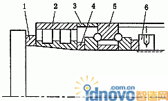 該結構對技術力量較強的廠家來說,憑經驗進行合理的選配和調整,不會對精度產生太大的影響。但這種結構在設計上存在不妥之處,當前面的3182100系列軸承2需要預緊時,要靠擰緊螺母6來實現。在裝配前選配調整墊1時,因為主軸本身的加工等原因,很難使調整墊1正好符合3182100系列軸承的預緊力要求,因為當各件都裝上后,擰緊螺母6使3182100系列軸承開始預緊,但當軸承2的外端與調整墊1端面接觸時,因軸承位置已經靠死,螺母擰不動。若軸承2未達到應有的預緊力時,將會影響主軸的剛性和回轉精度