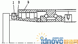 如果將主軸前支承的定位方式改為圖4所示。以螺母1進行軸向定位,墊片2起防松作用。在加工中若稍有位置偏差,也可通過墊片1使之與軸承3的端面均勻接觸。由此可見,螺母1既是軸向定位基準,又可控制軸向移動量,因此調整控制比較方便。