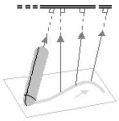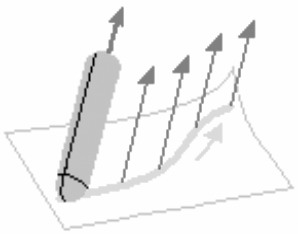 這里包括變軸掃描(Multi Axis Sweeping)、輪廓變軸驅(qū)動(Multi Axis Contour Driven)、曲線5軸驅(qū)動(Multi Axis Curve Maching)、5軸側(cè)刃輪廓銑削(Multi Axis Flank Contouring)等多種加工軌跡策略。系統(tǒng)提供的5軸加工的關(guān)鍵刀具軸矢量控制方式,包括點、直線、空間曲線、三維輪廓、曲面法向和曲面法向前后、左右傾斜等方式。如圖9、圖10所示的分別是常用五軸加工刀具軸矢量控制方式及其軌跡示意圖。