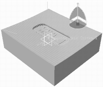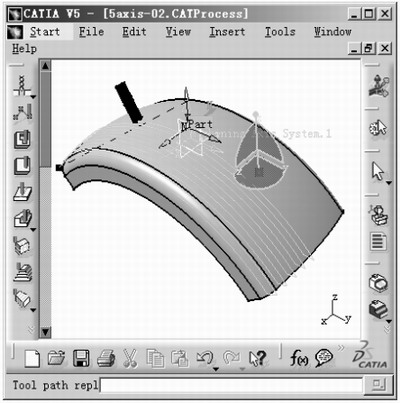 其三維空間曲面銑削刀具軌跡的控制方式靈活多樣,因而軌跡可以根據(jù)需要來調(diào)整。圖8所示的是某薄壁結(jié)構(gòu)產(chǎn)品零件,其加工特征為一空間曲面,且包含眾多不同平面的島嶼,這里利用CATIA系統(tǒng)的數(shù)控銑削加工編程功能對其編制了高速環(huán)繞加工與角落清根的銑削加工程序,并進了加工仿真。