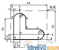 倒R5圓角:光標點取圓角圖標,將“∠R”形光標分別點取I、H、G、F、J點(光標呈‘×’形),朝倒圓角處拖出光標,在彈出的參數窗中將R值設為5,按回車鍵退出。
