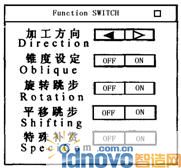 火花圖符走遍全路徑后,屏幕右上角出現“加工開關設定窗”,如圖9,其中有5項選擇:加工方向、錐度設定、旋轉跳步、平移跳步和特殊補償。