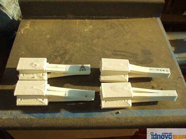 OK, ready to start casting parts? Start off by making a foam model and then dipping it in drywall texture so a thin shell is formed around the part.