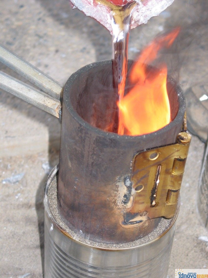 Once your aluminum is nice and orange, pour the beautiful fluid into the KHPT making sure you over fill it by about 3 inches. This will give the mold the head pressure it needs to completely fill the cavity.