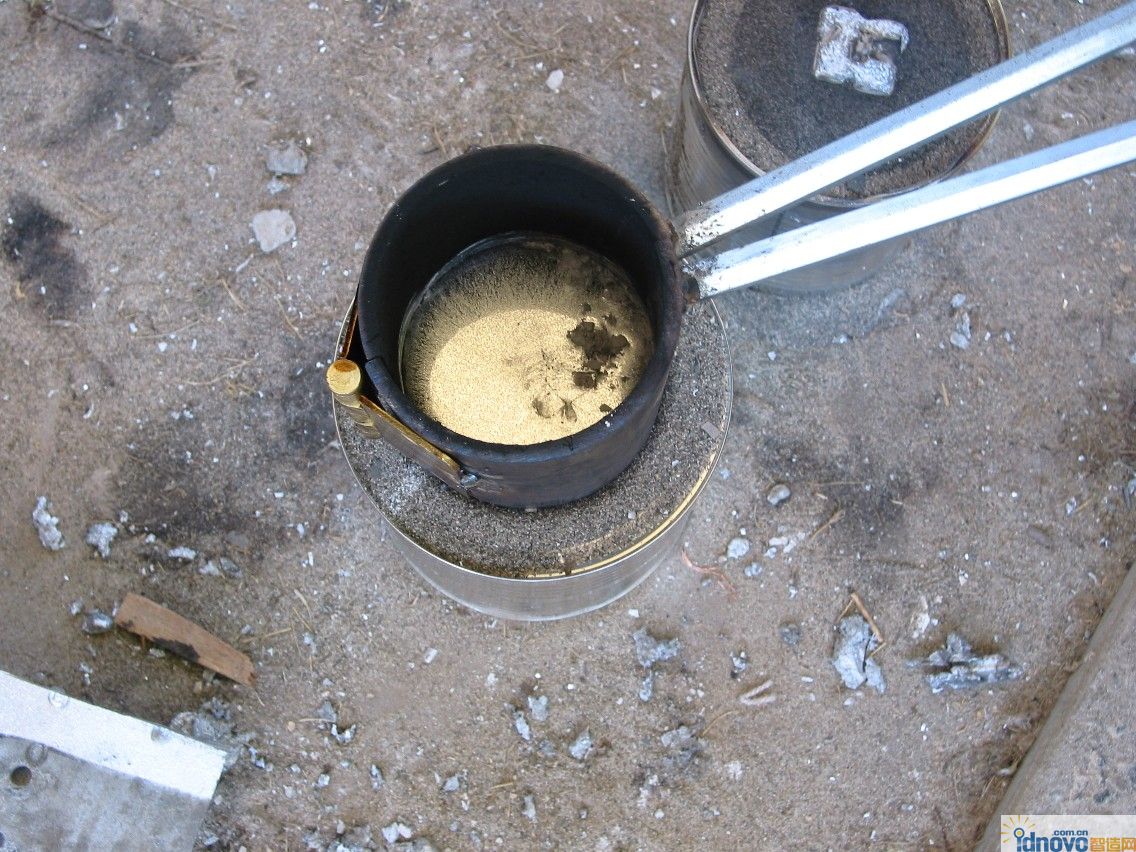 After 5-10 minutes of cooling, dump the sand from the flask and grab the part with your pliers.