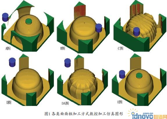 Mastercam的各種曲面加工方法各有特點,針對活塞內芯模具凸形曲面加工進行嘗試,然后用Mastercam軟件的仿真模塊得到仿真圖如圖1示,再利用 Ncsentry軟件測得加工參數,如表所示。通過仿真圖形、加工參數比較,發現不同的曲面加工方法的加工特點不同。對復雜曲面進行加工時,特定的加 工區域對應一種最優曲面加工方面,我 們應采取措施將刀具規跡控制在特定的加工區域,實現優質、高效。