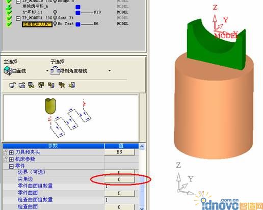 下面我們采用“保持尖角”的策略,來(lái)做一下這個(gè)零件,首先編輯精加工策略:根據(jù)角度精銑,并定義零件里的“尖角邊”如下圖(3)所示: