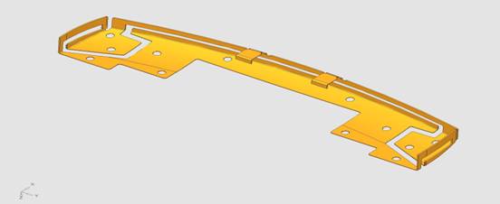 CimatronE的Die Design Solution為五金模具,尤其是級進模具提供了完整的設計解決方案,包括工位設計、料帶排樣設計,模具結構設計,模具零部件設計(簡單沖頭,成型沖頭)等,本篇重點介紹針對復雜鈑金展開策略,即輔助面展開(Blank on Binder),適用于零件結構復雜,通用的展開、折彎功能很難實現的零件展開工作。下面介紹如圖零件的三個折彎區域的展開。