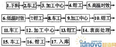 劃分工序與加工路線的確定直接關系到數控機床的使用效率、加工精度、刀具數量和經濟性等問題,應盡量作到工序相對集中,工藝路線最短,機床的停頓時間和輔助時間最少。安排工藝路線時除通常的工藝要求外,本例重點考慮以下因素: