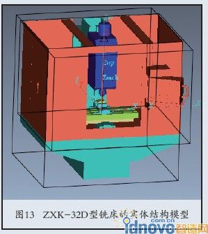 (9)機床外殼的構(gòu)建。在“Base(0,0,0)”中的“組件屬性”中調(diào)入 機床外殼建模文件,完成銑床在VERICUT系 統(tǒng)中的實體結(jié)構(gòu)模型建立。如圖13所示。