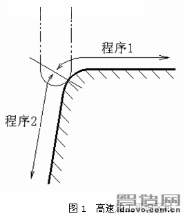 (1)模具型面加工時,采用分塊編程,把平坦和陡峭的面分開,以改善加工工藝性,提高加工效率。如圖1所示,平坦區域的程序1就可以考慮使用高速加工。