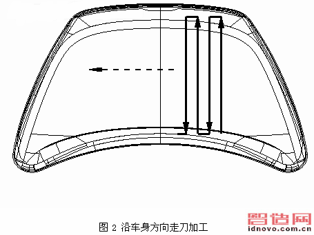 對于外覆蓋件的拉延模,要有足夠的重視,盡量沿車身方向走刀加工,如圖2所示。