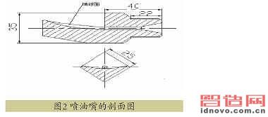 這樣的程序雖然復(fù)雜一些,但機(jī)上操作就簡(jiǎn)單多了。圖2所示的是噴油嘴的剖面圖。