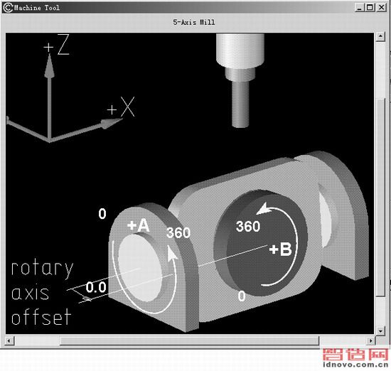 另外,如圖4所示,在我們定義機(jī)床運(yùn)動(dòng)關(guān)系時(shí)可以利用Machine Tool Display隨時(shí)進(jìn)行顯示,并與實(shí)際相比較。最后在完成所有的定義后形成最初的后置程序。這個(gè)程序通常需要根據(jù)實(shí)際后置結(jié)果進(jìn)行必要的調(diào)整和修改,以滿足實(shí)際的需要。