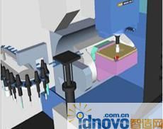機床仿真完全模擬機床的運動結構關系并可以檢查所有機床部件,如軸滑塊、主軸頭、轉塔、旋轉工作臺、主軸、刀庫換刀、夾具、切削刀具和其它由用戶配置的機床附件之間的碰撞和臨界碰撞。用戶可以在零件周圍設置一個臨界碰撞區域,檢測周圍的臨界碰撞狀態和超行程錯誤。