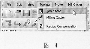 選擇刀具。這里通過刀具庫選擇刀具。打開刀具庫,見圖4。