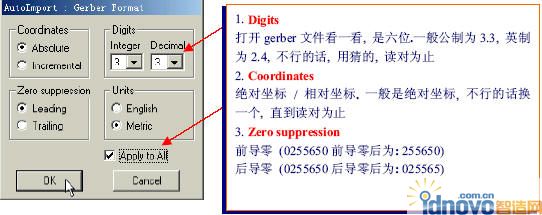 Digits:打開Gerber 文件看一看,是六位的。一般公制為3:3,英制為2:4。不行的話,用猜的,直到讀對為止。