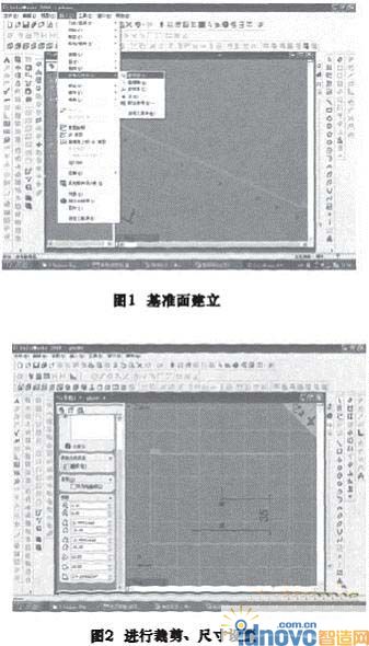 如上面打開零件繪圖框,選擇"前視",插人"基準面1",在"等距距離"框中輸人"10",建立基準面1,如圖1.