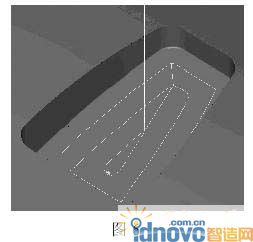 下刀方式:由于大量的余料已在粗加工時去除了,在精加工時下刀方式可直接在槽的中間附近垂直下刀。