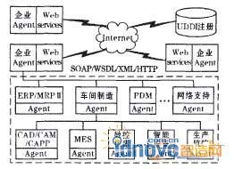 智能制造、協(xié)同制造、基于服務的制造等先進制造模式要求實現(xiàn)互聯(lián)網(wǎng)上異構系統(tǒng)跨平臺、跨地域的無縫集成和快速重構。近年來,雖有不少學者提出基于CORBA和Agent技術的企業(yè)信息基礎架構的解決方案,以及基于Web Services和可擴展標記語言XML的信息集成方案,但這兩者都各有其局限性。前者不能穿越防火墻,僅適合企業(yè)內(nèi)部局域網(wǎng)使用,不能滿足跨平臺、語言獨立、松散耦合的異構應用的交互和集成;后者雖實現(xiàn)了異構平臺間的互操作,但由于缺乏必要的協(xié)調(diào)性和主動性,仍然屬于靜態(tài)的遠程調(diào)用,智能性不強,因此也不適合在跨企業(yè)信息集成中應用。本文結合web Services的跨平臺性、編程語言無關性、面向服務的封裝方式等特點與MAS(Multi-Agent System)的自主性、智能性、協(xié)作性等特點,提出了基于Web服務和MAS的網(wǎng)絡化集成制造框架模型,分析了其通信和協(xié)作過程,為網(wǎng)絡化制造提供一種普遍的、開放的、可擴展的、松散耦合的集成系統(tǒng)框架結構,實現(xiàn)了跨平臺、跨地域的無縫信息集成和快速重構。