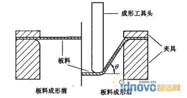 圖1 漸進成形(負成形)及板料成形角原理示意圖