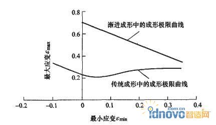 圖3 傳統成形方法與漸進成形方法的成形極限曲線