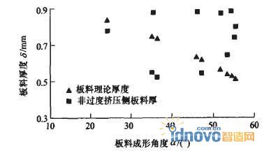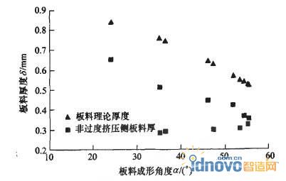 圖ll 零件2非擠壓側板料實際厚度與理論厚度比較圖