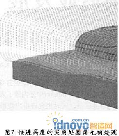 (1)快進高度的尖角處,如圖7所示。PowerMILL叫采用圓角的光順處理,可顯著減少對機床的沖擊,提高加工效率。