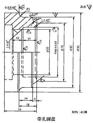 如圖所示帶孔圓盤工件,材料為45鋼,分析其數控車削工藝。