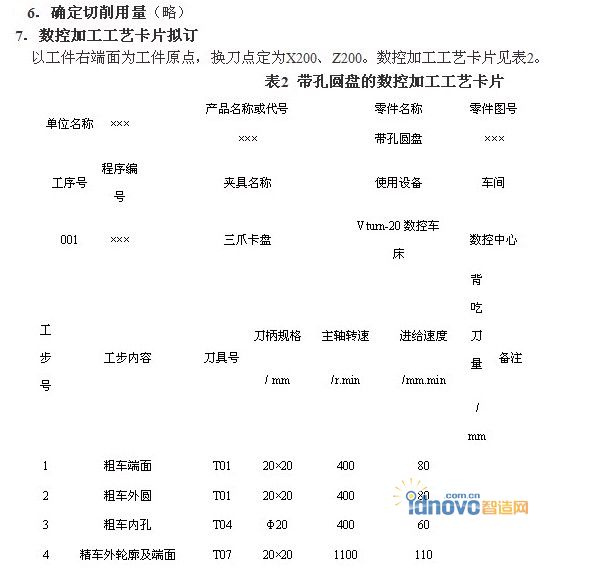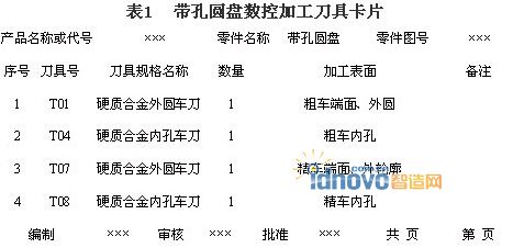 將所選定的刀具參數填入表1帶孔圓盤數控加工刀具卡片中。