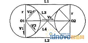 r為兩圓的半徑;O1,O2分別為兩圓的圓心;Vr為兩圓心問(wèn)的矢量,即Vr=O2一O1。