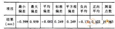 從表l可知,測量結果中,偏差最大值為0.959mm,平均偏差為士0.172mm。