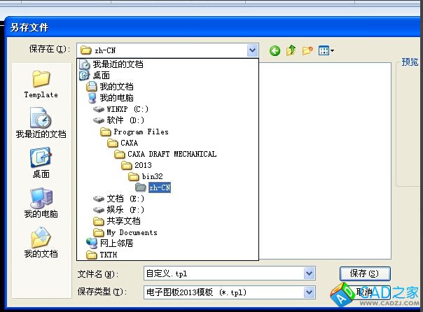 7、將制作好的電子圖版圖框,保存在安裝文件,并選擇保存類型為電子圖版模板形式,這樣自己畫的圖框就轉(zhuǎn)化為模板了,下次畫圖還可使用。