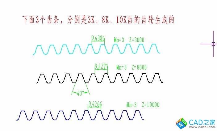 其實,我們可以這樣來看齒條:就是一個無窮大的齒輪的一段。這樣理解,就很容易找到快速繪制齒條的方法了。看下面的截圖,大家圖示按步驟做就可以得到你想要的齒條了。
