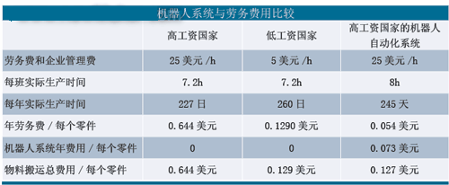 在這樣的假設條件下,采用機器人系統(tǒng)服務是一項最便宜的選擇。而且得出這一結論的前提是:還沒有將其他可以節(jié)約的因素考慮在內,如包括運輸、稅務、潛在的交貨推遲和國際風險等相關的因素。