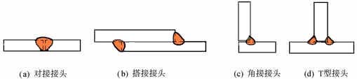 在焊接前,應根據焊接部位的形狀、尺寸、受力的不同,選擇合適的接頭類型。常見的接頭型式有對接、搭接、丁字接和角接等,如圖1所示。