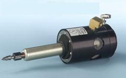 Flexdeburr是一種輕巧的旋轉(zhuǎn)工具,其主軸采用徑向壓縮空氣作為動力支撐,可以在不規(guī)則的零件表面上高速旋轉(zhuǎn)、操作加工。其“浮動”馬達(dá)和主軸采用±8mm的徑向動力裝置,可以使精加工力保持恒定。Flexdeburr配有一個剛性外罩和一個內(nèi)部的馬達(dá)/主軸總成,運(yùn)行比較方便。氣動馬達(dá)/主軸總成安裝于外罩的心軸軸承上,氣動馬達(dá)與心軸軸承獨(dú)立于外罩運(yùn)行,徑向“動力場”由工具外罩前側(cè)的環(huán)形小型氣動活塞提供,其動力可以從工具徑向的任何一個角度(360°)傳送到主軸/工具上。馬達(dá)內(nèi)部的調(diào)速控制器可以使主軸以40000r/min的轉(zhuǎn)速保持高速運(yùn)行,每單位可承受0.7~4.3kg的載荷而不變形,供氣壓力為0.035~0.42MPa。
