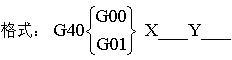 指令中有x、y值時(shí),表示編程軌跡上取消刀補(bǔ)點(diǎn)的坐標(biāo)值。無x、y值時(shí),則刀具中心點(diǎn)將沿舊矢量的相反方向運(yùn)動(dòng)到指定點(diǎn)。