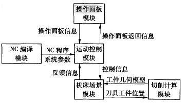 虛擬數控機床應具備的特點有:良好的結構、完善的圖形接口、完全的符號數據接口、強大的網絡支持功能和標準數據格式。以上諸方面決定了虛擬數控機床需要具備合適的體系結構。根據虛擬數控機床的特點,可以將系統的功能模塊做如下劃分: