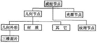 (5)機床場景模塊:采用WTK軟件的場景圖模型,每個機床部件都是場景圖中的節點,包含機床部件的幾何模型和材質、紋理及光源等信息。節點的數據結構如圖2所示。節點可以接受速度矢量的驅動。將部件節點按傳動鏈連接,從而實現對運動控制模塊速度矢量的響應。