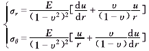 正應(yīng)力與徑向位移的關(guān)系式為[4]: