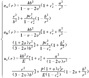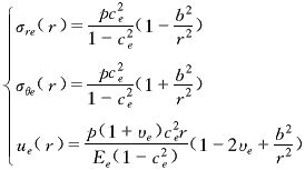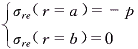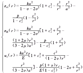 由于電機轉(zhuǎn)子內(nèi)孔存在均布壓應(yīng)力,外圓面為自由面,根據(jù)式(1)、式(6)和式(7),求解微分方程得: