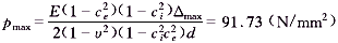 根據(jù)式(2),電機轉(zhuǎn)子內(nèi)孔配合面上具有最大的切向拉應(yīng)力σθemax和最大的徑向壓應(yīng)力σremax,其值為:
