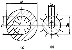電機轉(zhuǎn)子內(nèi)孔受正壓力p作用,外圓面為自由面,如圖1a所示。因此邊界條件為: