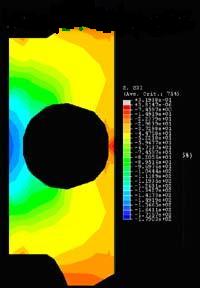 在這兩個過程中,力通過小軸施加在連桿上,而約束限定在大軸上。由于軸與軸瓦之間存在著間隙,因此在這一過程中會有產生自由剛體運動的瞬間,這在有限元的靜力分析中會導致計算不收斂而無法進行。解決的方法是在小軸和連桿上分別引入彈簧約束,只要選擇較小的彈簧剛度系數,則既可限制自由剛體運動,又不會使最終結果產生大的誤差。