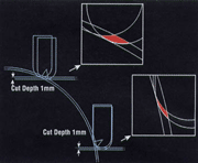 圖2:對于相同的切深,刀具咬合方面的差異可能改變刀具負載和表面粗糙度。