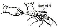 曲面刮削時用腕力控制曲面刮刀,使側刀刃順著工件曲面刮削。